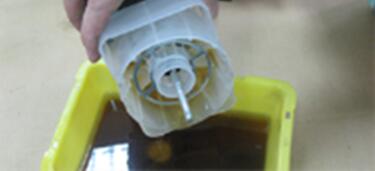 Rinse foam element in hot water with detergent, or non-flammable or high flash point solvents. After rinsed element is well dried, immerse it into clean engine oil, rub well and squeeze out excessive oil.